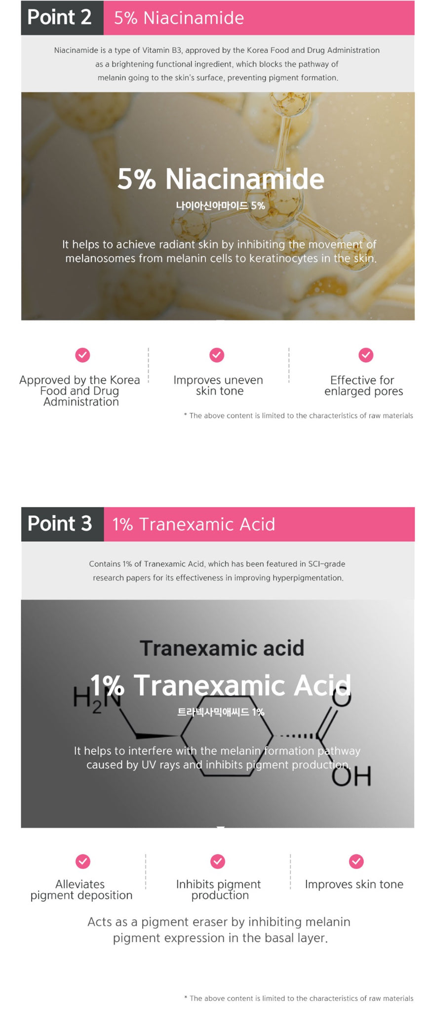 Water, Butylene Glycol, Niacinamide, Glycerin, 1,2-Hexanediol, Tranexamic Acid, Polyglyceryl-10 Laurate