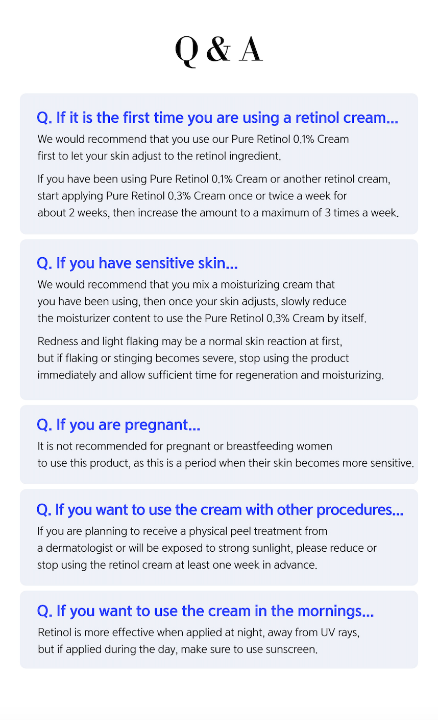 A spot cream with 0.3% pure retinol to help care for wrinkles, elasticity, and skin texture with a stronger anti-oxidant effect.