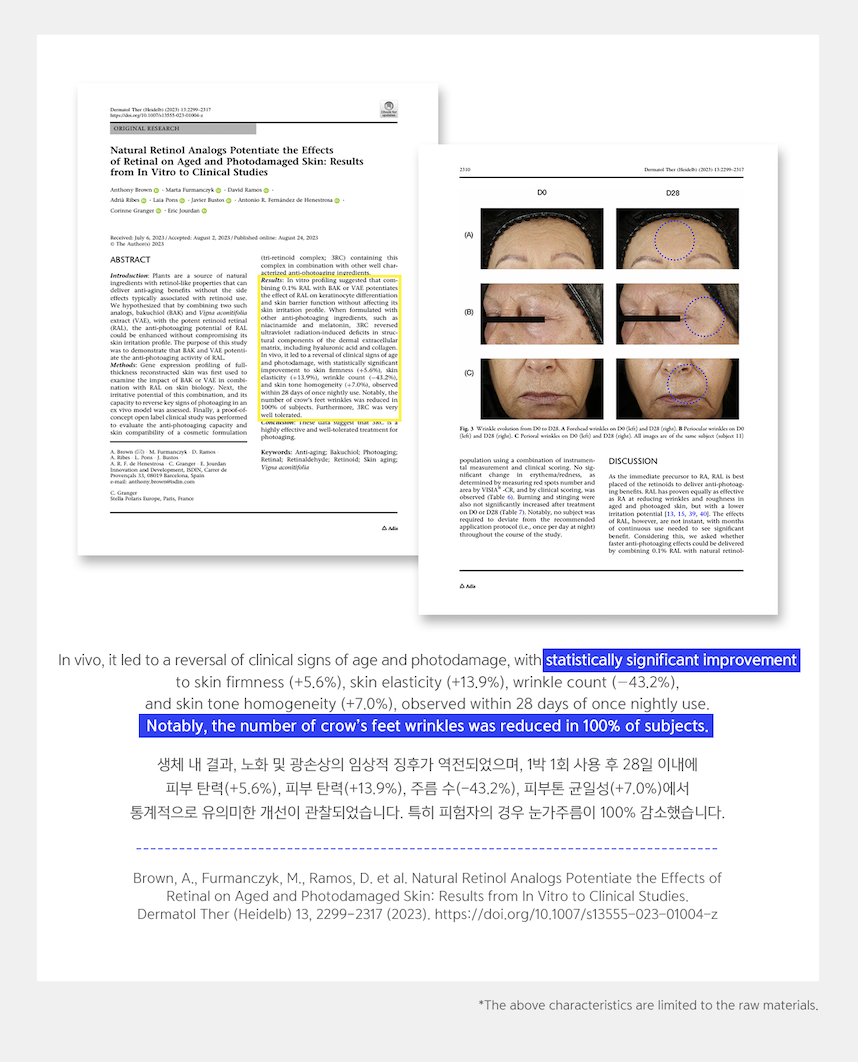 A strong anti-aging effect with the most similar content to 0.03% of retinoic acid.