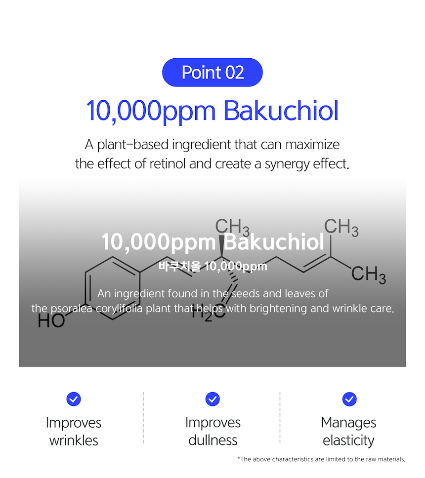 A higher synergy effect of the retinol cream enhanced by bakuchiol, a plant-based retinol substitute.